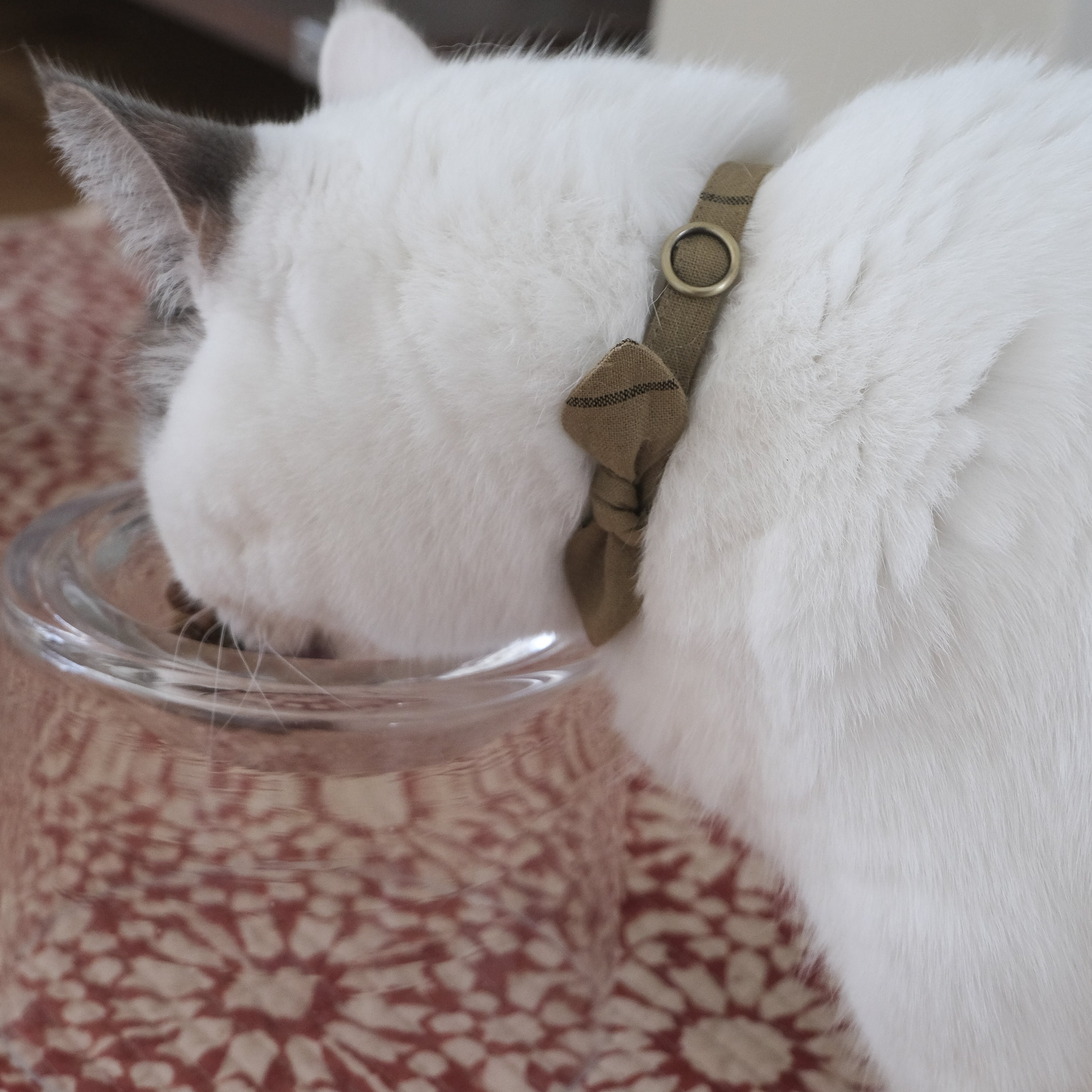 シンプルで品のあるチェック柄が、猫さんの首もとに静かな存在感を添えてくれます。